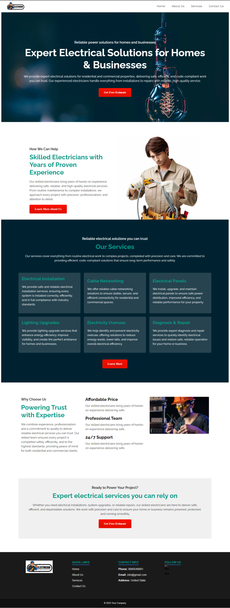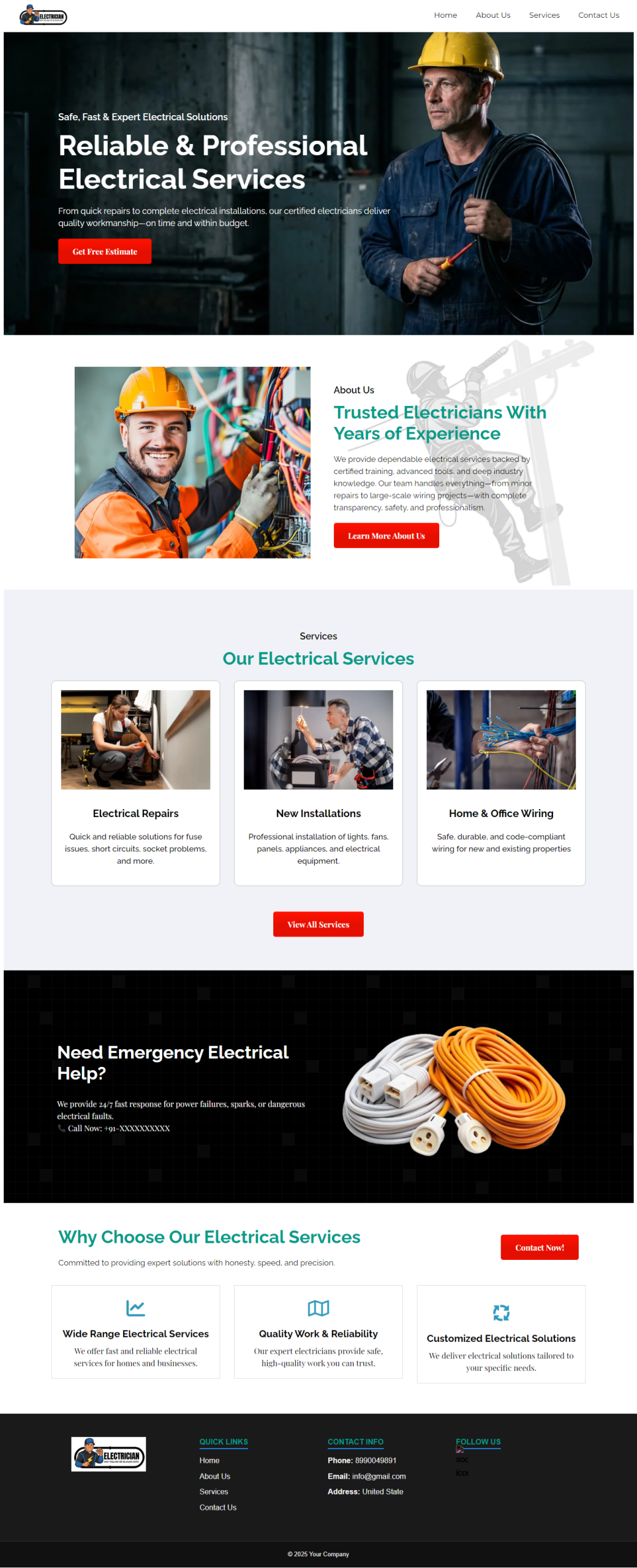 Absolutely. The electrician website theme is fully responsive and optimized to look great on desktops, tablets, and mobile devices.